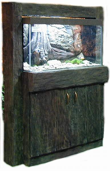 akváriumtartó bútorra. A világítás a fent lévő u profilú öreg fagerenda belsejébe lett felszerelve.