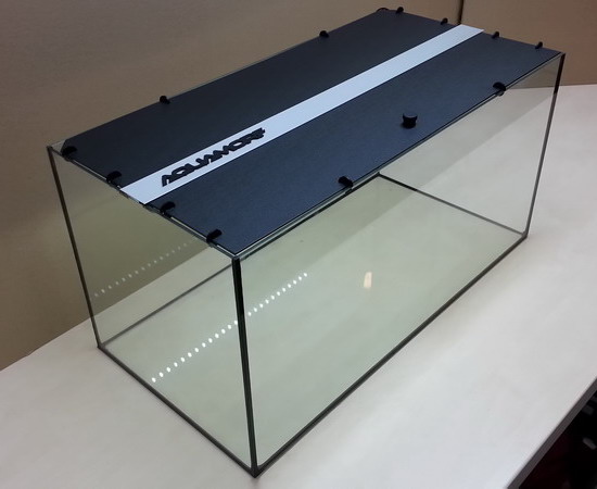 Az akvárium tető anyaga, minőségi, ezüstre eloxált alumínium profil. Felső nyílás fekete mikro domborított plasztik lemez, vagy PE maggal ellátott alumínium szendvics lemez /ezüstszürke és fehér színben/, plusz alumínium keresztmerevítő, mely pár mozdulattal könnyedén lebontható a nagyobb karbantartási munkák elvégzéséhez. Az akvárium tető merevítőben lévő horonyban a betétlemez felállítható megkönnyítve ezzel a napi apróbb feladatok ellátását. A tető felsőrészében lévő hely elegendő a T5 és T8 világítótestek, vagy az általunk ajánlott széles spektrumú akvárium LED világítás kényelmes elhelyezésére. Az akvárium tető hátoldalán két darab 44mm átmérőjű fedődugóval ellátott szerelő és kábelátvezető nyílás található. Az akvárium tető teljes magassága 110 mm, ebből 38 mm lefelé lóg az akvárium felső szélétől, ez a rész a vízvonalat hivatott takarni. Tehát az akvárium tető az akváriumot 72 mm-el magasítja meg.(110-38 =72mm)